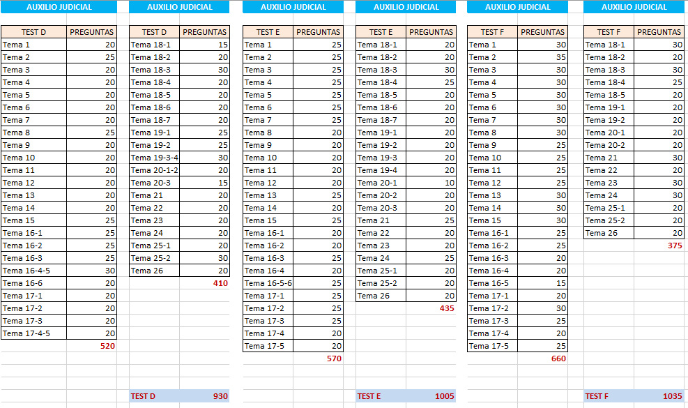 NUEVOS LIBROS DE TEST «D», «E» Y «F» PARA AUXILIO JUDICIAL (OEP 2020-2021-2022)