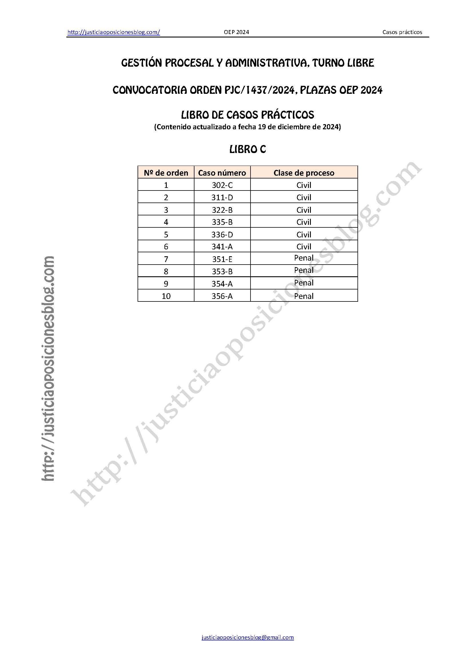 NUEVO LIBRO DE CASOS PRÁCTICOS PARA GESTIÓN PROCESAL (ORDEN PJC/1437/2024)