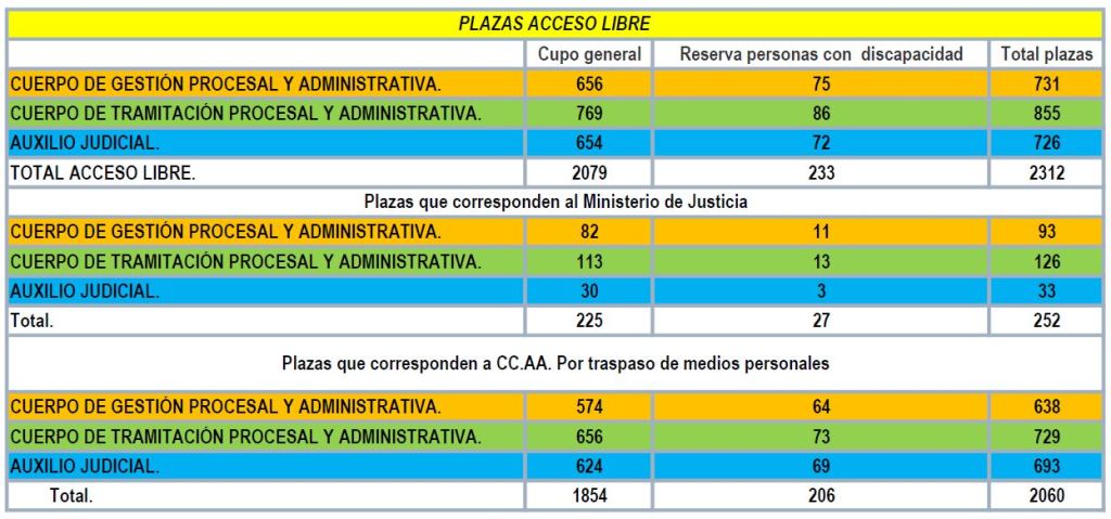 En el ámbito de la Administración de Justicia y en relación con los Cuerpos de GESTIÓN PROCESAL Y ADMINISTRATIVA, TRAMITACIÓN PROCESAL Y ADMINISTRATIVA y de AUXILIO JUDICIAL, las plazas que se han aprobado en el año 2024, son las siguientes: