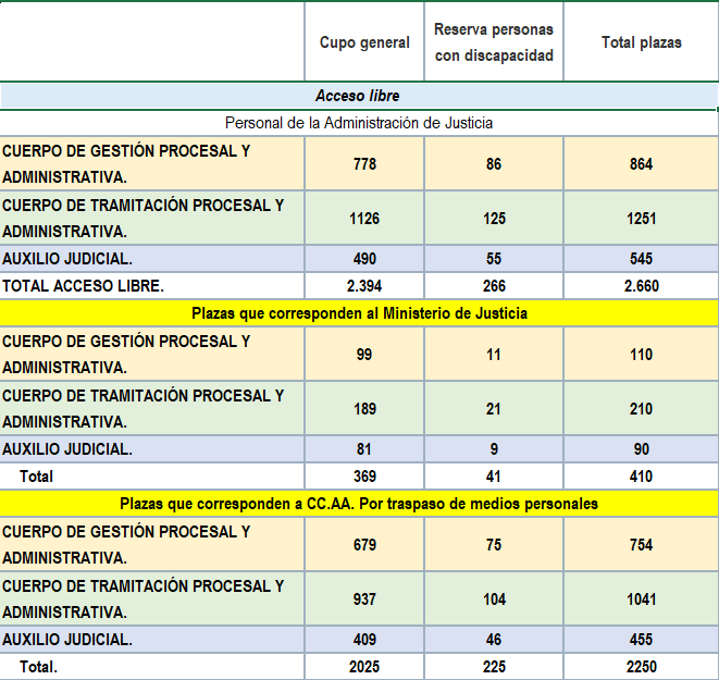 En el ámbito de la Administración de Justicia y en relación con los Cuerpos de GESTIÓN PROCESAL Y ADMINISTRATIVA, TRAMITACIÓN PROCESAL Y ADMINISTRATIVA y de AUXILIO JUDICIAL, las plazas que se han aprobado en el año 2025, son las siguientes: