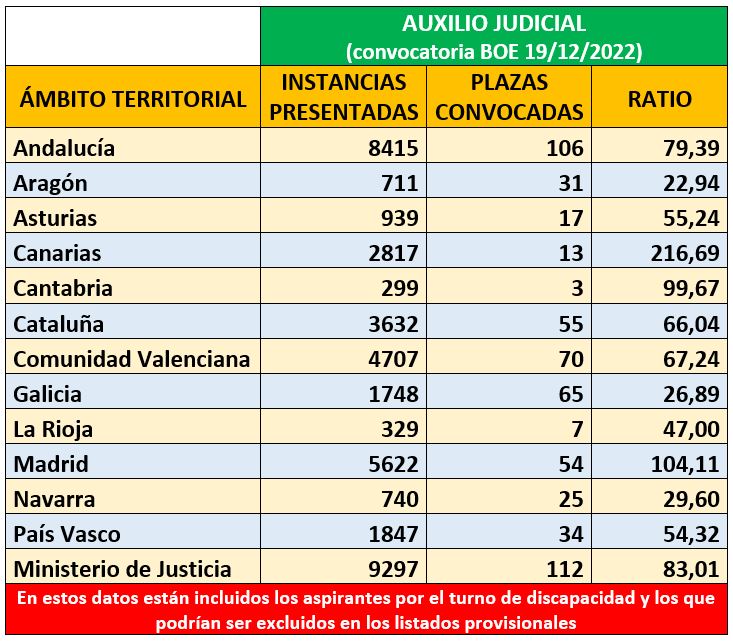 - 2.115 plazas en el Cuerpo de Auxilio Judicial