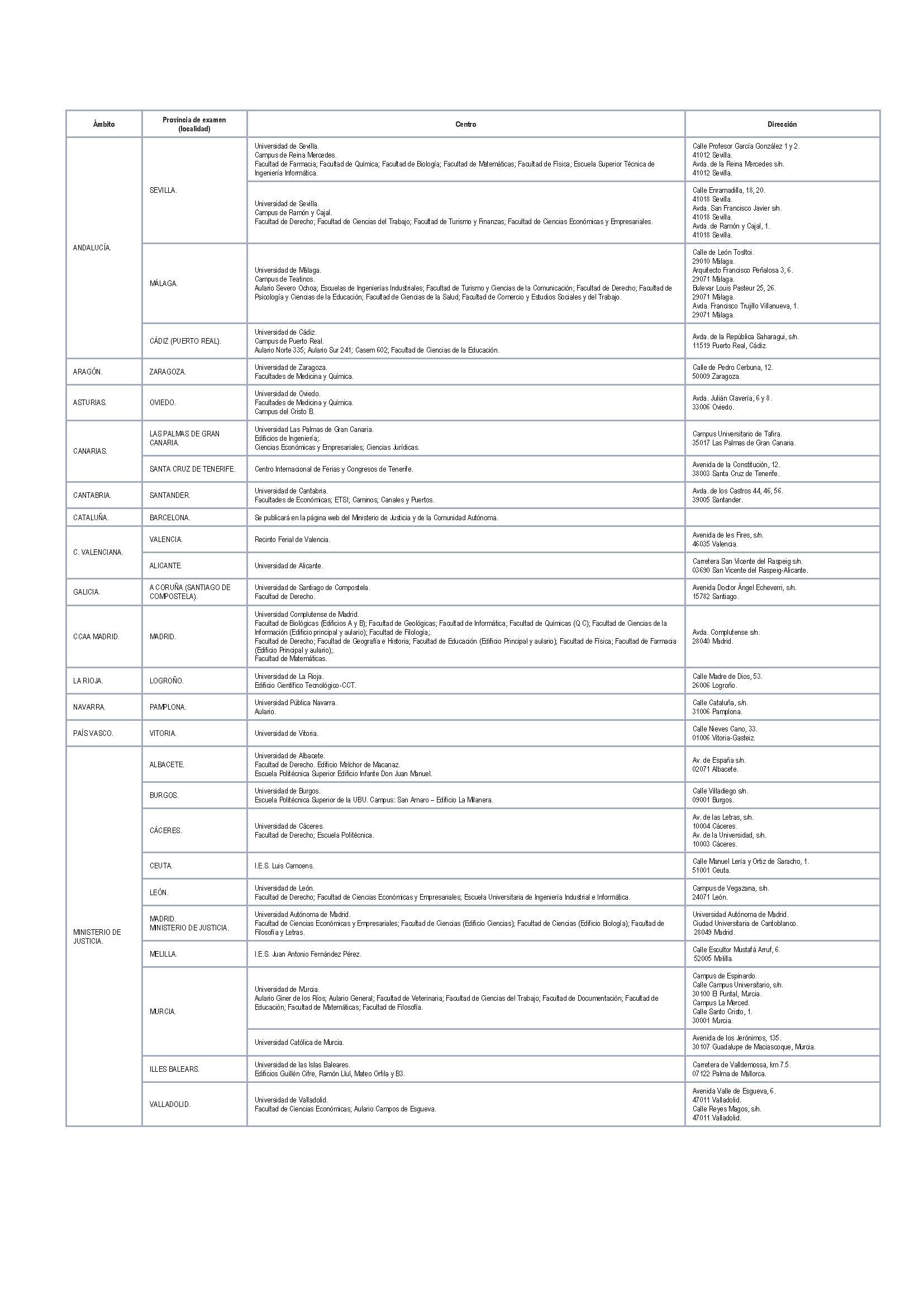 Además, continúa, el Ministerio habría descartado la posibilidad de que el examen se realizase en la sede más cercana al domicilio del aspirante, por lo que los opositores deberán desplazarse a realizar el examen a la sede del territorio por el que participen. No obstante, se deja abierta la facultad de que tanto el Ministerio de Justicia como las Comunidades Autónomas, en sus respecticos ámbitos territoriales, puedan ampliar las sedes de examen.