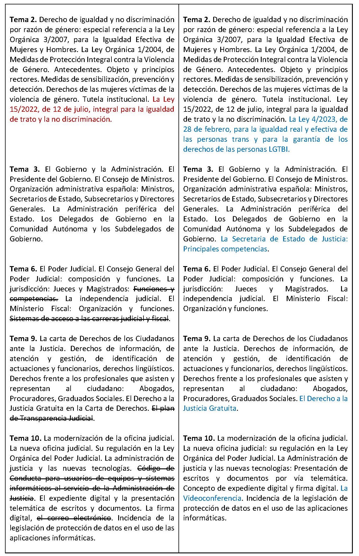 En justiciaoposicionesblog.com ya hemos realizado los oportunos cambios para adaptar los temas al programa de la oposición: hemos añadido o eliminado contenidos para adaptar los temas al nuevo programa.