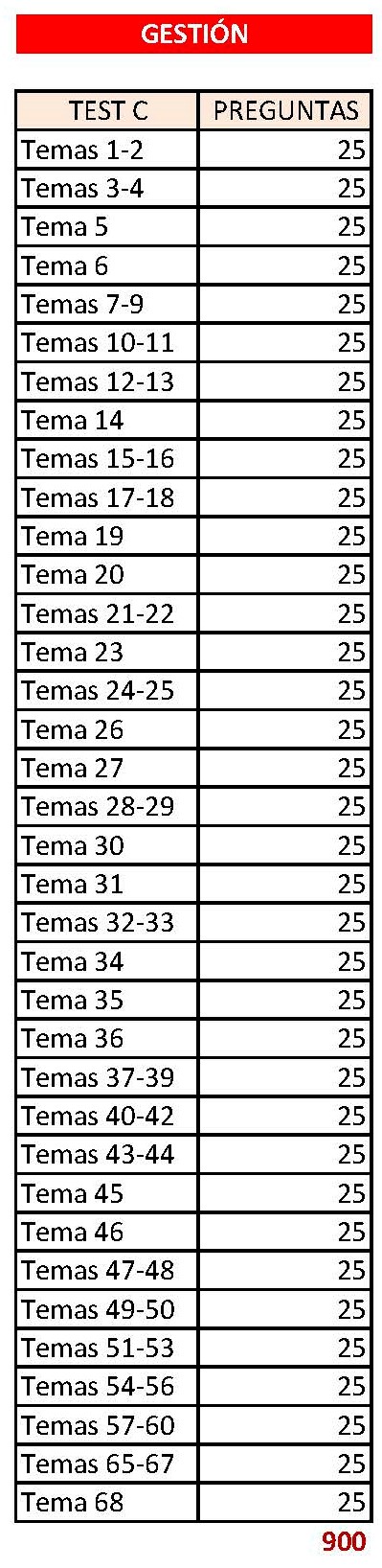 Algunos de estos test del bloque C son de preguntas de un tema, otros contienen preguntas de dos temas y otros preguntas de una parte de de un tema. En total, son 825 preguntas; consultar la distribución de las preguntas.