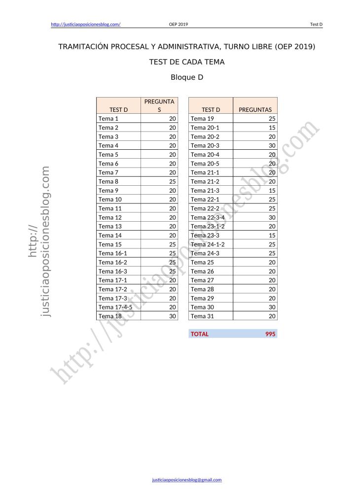 Puedes obtener gratis nuestro bloque D de test con preguntas del programa de Tramitación Procesal y Administrativa, turno libre, durante los próximos días.